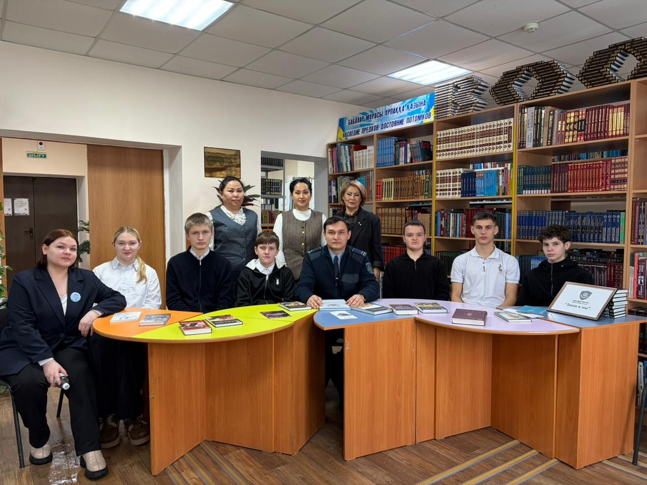 Сегодня в детской модельной библиотеке в рамках правового часа «Закон и мы» состоялась встреча со старшеклассниками. Приглашенным гостем мероприятия стал инспектор ГЮП Шаймерден Руслан Максатулы.